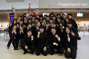 橋本龍太朗主将(文4=東京・早実)、濱本和樹主務(政経4=東京・早実)、清水拓海(文4=千葉・市川学園)、田中美沙(スポ4=埼玉・栄北)