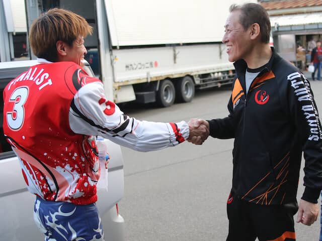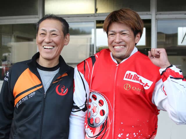 レース後は師匠である田中泰彦(山陽19期)に祝福され、ガッチリと、握手をかわした。