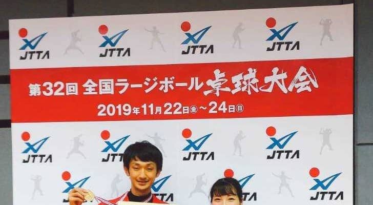 角は混合ダブルス一般の部でも優勝しており、第32回全国ラージボール卓球大会の2冠を達成した。