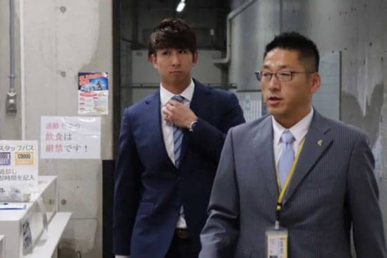 ソフトバンクの球団事務所を訪れ報道陣に対応「来季からは千葉ロッテマリーンズでお世話になると決めました」 国内FA権を行使…