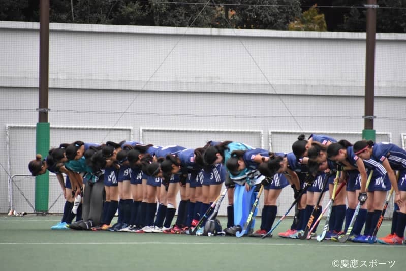 最終Q、5分に相手のファールで一時的な数的有利の状態に。そんなチャンスの中、慶大は花田ともみ(政3・慶應湘南藤沢)がシュートの見せ場を作り、1年生ながらスタメンに名を連ねている津田美友佳(理1・立命館)がサークル際で巧みなボールキープを見せ、さらには西本がサークル内へ惜しいロングパスを出すなど、フィールド上の選手たちも、ベンチで控えるメンバーも、そして慶大を応援する観客も、全員が最後まであきらめなかった。そして残り1分、野村茉以(経3・慶應女子)がカウンターからチャンスを作り、どの選手も最後まで走り続けた。しかし同点に持ち込むことはできず、フィールドには試合終了のブザーが鳴り響いた。