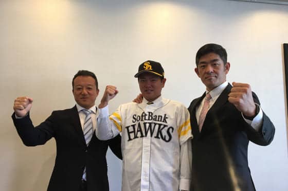 ソフトバンクは、チームにはいない右のサイドスロー、気持ちを前面に出した「ケンカ投法」、球持ちの良さを評価して指名した。今年の不調も織り込み済みだったため、仮契約の席で福山龍太郎アマスカウトチーフは「神宮大会で復調してきた。持ち味のボールの強さと投げっぷりの良さが存分に出ていたと思うので、改めていい縁があってよかったなと思いますね」と安堵。そして、プロ入り後に身体作りをすることで「球威もプラスアルファで出てくる」とさらなる成長を期待する。