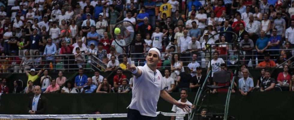 写真はメキシコでのエキシビションマッチでのフェデラー
