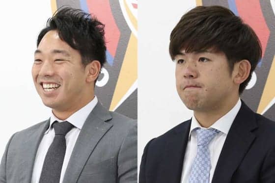 契約更改を行った日本ハム・宇佐見真吾(左)、清水優心【写真:石川加奈子】