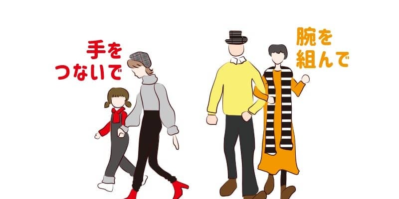 そんなときに有効なのは、誰かと一緒に歩くこと。他人の歩幅やテンポに合わせてみましょう。手をつないだり腕を組むと自然に歩幅やテンポを合わせなければならないので、楽しみながらトレーニングができます。