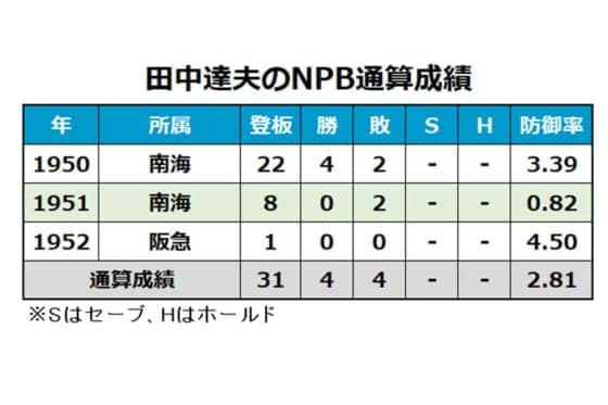 田中達夫の通算成績