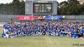 <写真・立命大に雪辱を果たし、満面の笑顔を見せる選手たち> 12月1日、大阪府万博記念競技場にて2019年度全日本…
