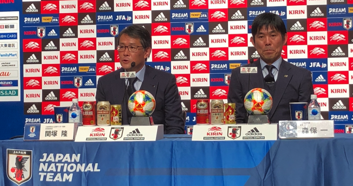 4日、日本サッカー協会(JFA)は、韓国・釜山で10日から18日にかけ開催される『EAFF E-1サッカー選手権2019』に臨む日本代表のメンバー記者発表を行った。会見の登壇者は、関塚技術委員長と森保監督の二人。