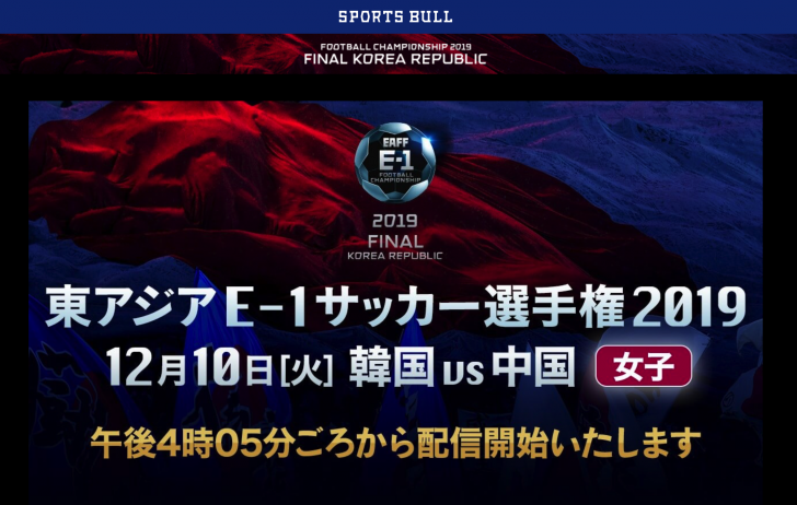 「スポーツブル」では、東アジアE-1サッカー選手権の日本戦を含む(男女/全12試合)の見逃し配信と海外勢同士の試合(男女/全6試合)を無料ライブ配信する。