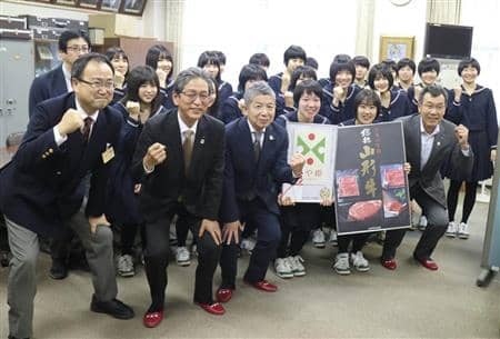 「春の高校バレー」として来年1月5日に開幕する第72回全日本バレーボール高等学校選手権大会に山形県代表として出場する山形市立商業高校の女子バレーボール部を激励しようと、JA山形市とJAやまがた、JA共済連山形は4日、県産米「つや姫」60キロと山形牛10キロを贈った。