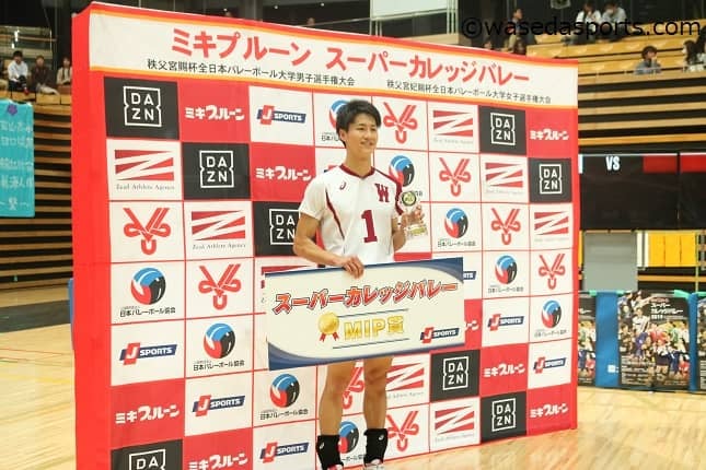 先輩たちに去年良い思いをさせてもらって気づいたことがあります。それは早稲田のバレー部はバレーボールが価値観の尺度ではなくて一人一人が頭を使って自分の活躍できる場所を探してその場所で輝ける場所なんですよ。だから具体的に言ったら1年生の堀内(直人、スポ1=愛知・滝)は大会期間上井草の体育館に戻ったらずっといました。それはどうしてかといえば先輩の練習を手伝って球出しをしたり、酸素カプセルに入る先輩のお手伝いをしていました。あいつはそういったことを率先して行ってくれていて。堀内のことを今言いましたが他にもそういう後輩がたくさんいてそういったことをやってくれていても厳しいことを自分たちが言うことも時にはありました。それでも最後は良かったと思ってもらいたかったのでみんなで日本一を目指していました。