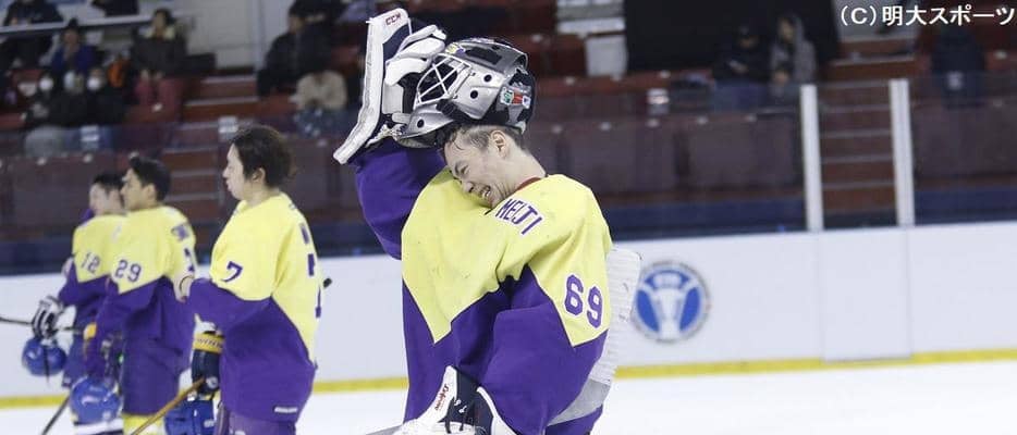 その後は体格で上回り、パスの精度が高い相手に対して守備の時間が続く。それでも、磯部がゴール前で立ちはだかった。第2ピリオド13分にはペナルティーを取られ数的不利な状況に。その局面で1対1のシュートを防ぐなど冷静なキャッチング。「今日は神がかっていた(笑)」。60分間で65本のシュートを浴びながら1点に抑える大活躍。エースと守護神。2人の絶対的支柱が大熱戦をつくり出した。
