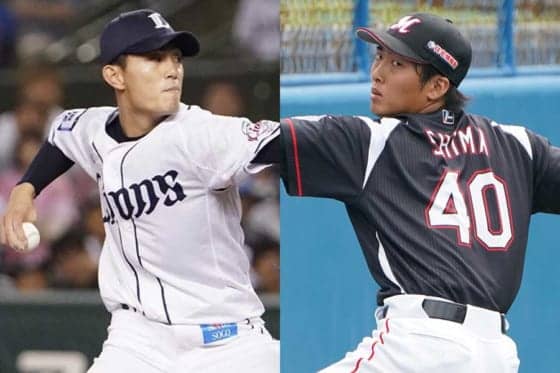 西武・今井達也(左)と現役引退を発表した島孝明【写真:荒川祐史】