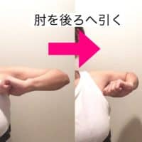 ① 肘を後ろへ引く