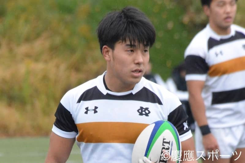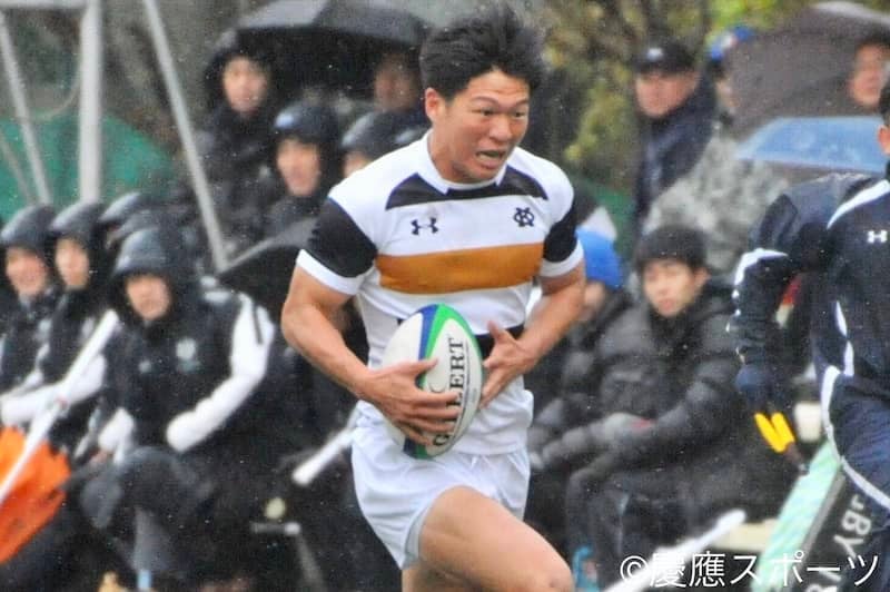 そんな重い空気を打破したのは、この日14番に入った1年・WTB辻田拓史(法1・慶應)だった。24分、筑波大の展開を読み切り前に出ると、ボールをインターセプト。およそ40m、相手ディフェンスを寄せつけることなく走り切った。SO鎌形正汰(商3・慶應)のコンバージョンキックも決まり7-0。慶大が欲しかった先制点を挙げた。