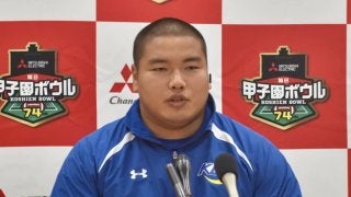 <写真・会見で記者の質問に答える寺岡主将> 12月12日、兵庫県阪神甲子園球場にて三菱電機杯第74回甲子園ボウルを前に、…