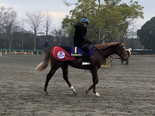 追い切りに騎乗した松岡は「内から他厩舎の馬に来られた影響で予定とは違う形になったけど、時計的には十分。馬も出来ています。まだこれから良くなる馬で、背腰などもしっかりしていないため、レースではまずリズム良く、いいフォームで走れるようにしたいですね。素質は高いと思っているので、現時点の完成度でどれだけやれるか」と展望した。