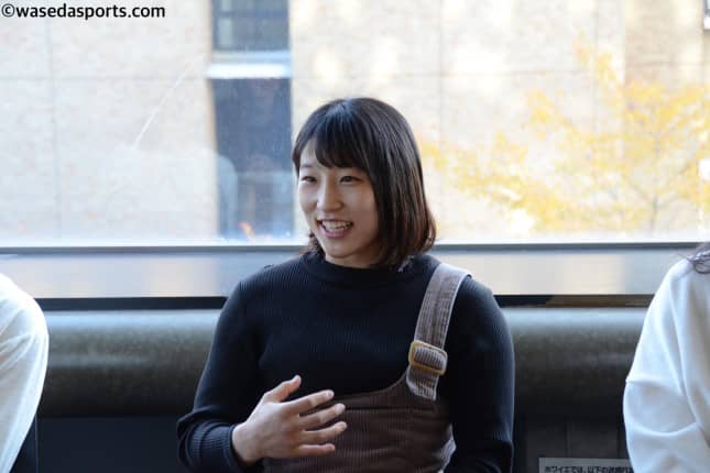 全日本学生選手権(インカレ)で3位、全日本女子オープン選手権で2位に入賞した臼池優月(社3=茨城・鹿島学園)とインカレ2位の小玉彩天奈(社2=高知東)、明治杯全日本選抜選手権(明治杯)で優勝を果たした須﨑優衣(スポ2=東京・安部学院)による女子対談。女子だけの対談ということで和やかな雰囲気が流れるなか、真剣なお話から私生活まで多岐にわたり話を伺った。