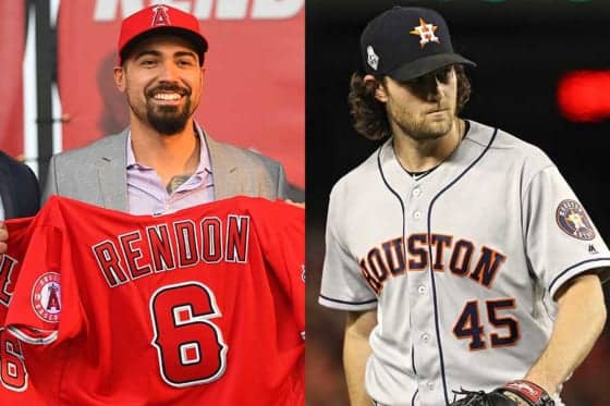 エンゼルスへ入団したアンソニー・レンドン(左)とヤンキースと契約合意したゲリット・コール【写真:Getty Images】