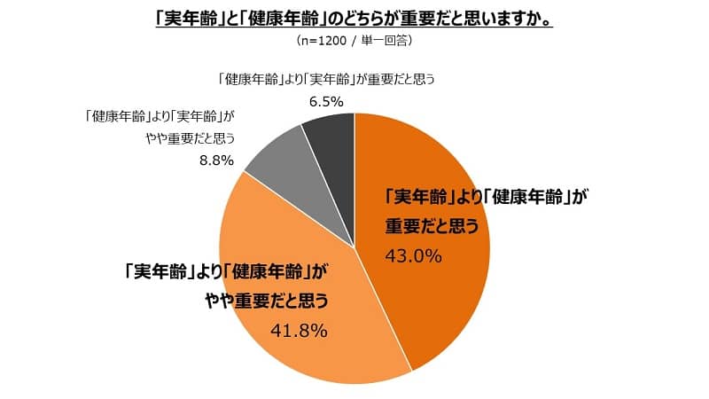 「実年齢」と「健康年齢」のどちらが重要だと思うかを聞いたところ、8割以上が「健康年齢」の方が重要だと思うと回答。[グラフ①]