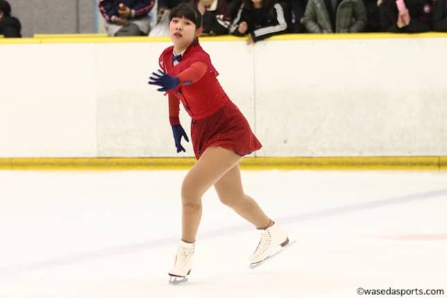 まずは、10月の東日本学生選手権で団体優勝を遂げた3級女子の選手たちが登場。谷川が先陣を切って登場し、『9to5 the musical one of the boys』を演じた。留学をしていたという今季は練習環境が十分でない時期もあったと語るが、「今はもう留学前と同じぐらいの感じでできています」と明るく笑った。この日は、級内で屈指の難度であるダブルフリップを着氷するなど高い実力を見せた。しかし谷川は、演技全体を「きょうの演技は今まで練習してきたものが出せなくて、特にスピンに関して悔しい」と振り返る。レイバックスピンは美しく決めたが、悔しさの残る部分もあった。しかし、落ち着いた表情で今後を語る姿はさらなる伸びを期待させる。次戦は全日本学生選手権だ。昨年度6位に入ったこの大舞台で、どんな滑りを披露してくれるだろうか。