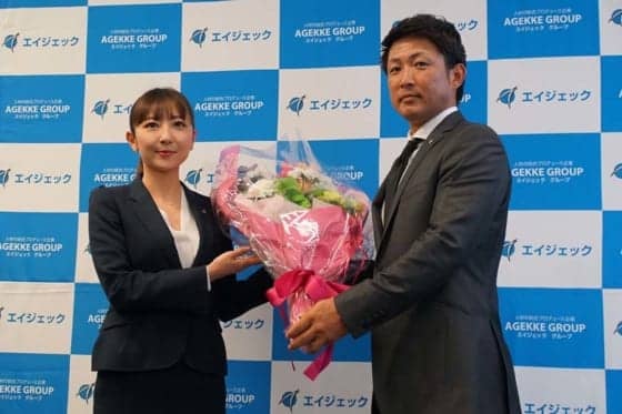 エイジェックのスポーツ文化プロジェクトのマネージャーに就任した元広島・梵英心(右)【写真:編集部】