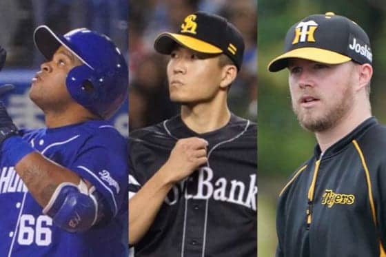 中日のダヤン・ビシエド、ソフトバンク・千賀滉大、阪神のピアース・ジョンソン【写真:荒川祐史】