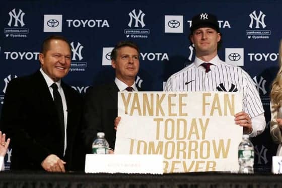 ヤンキースに移籍したゲリット・コール(右)【写真:Getty Images】