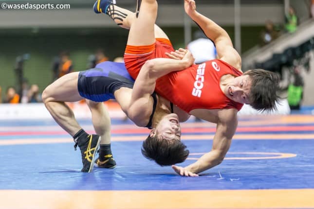 天皇杯3日目。初戦を迎えたのは、フリースタイル57キロ級の岩澤侃(スポ4=秋田商)、65キロ級の安楽龍馬(スポ2=山…