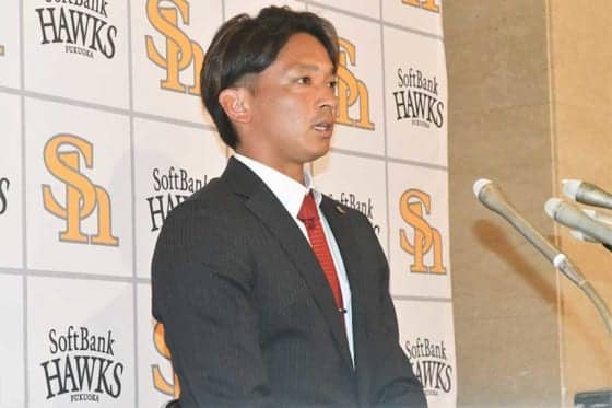 鷹・千賀、会見であえて胸に付けた“謎のバッジ”の正体は… 「大好きな先輩だから」