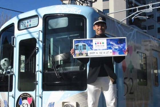 車内にはルーキー時代に使用していたという「52」の刺繍がほどこされたグラブを持ち込み、旅程の最後には「『52席の至福』ということで、僕も背番号『52』をつけていたころを思い出しました」と車内で挨拶を行った。「こんなに近くで目をしっかり合わせて(ファンと)しゃべることはない。僕としても貴重な時間になりましたし、ファンの皆さんにも喜んでもらえていたら」とファンとの交流を楽しんでいた。(安藤かなみ / Kanami Ando)