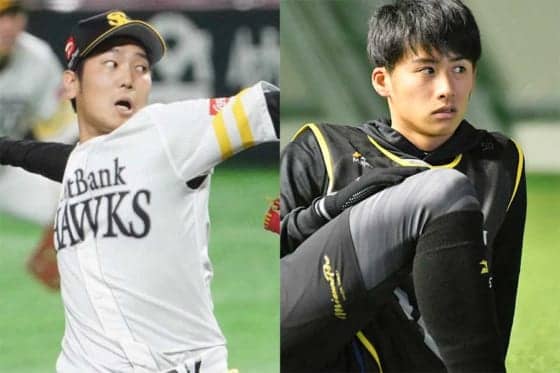 ソフトバンク・石川柊太(左)と板東湧梧【写真:荒川祐史、藤浦一都】