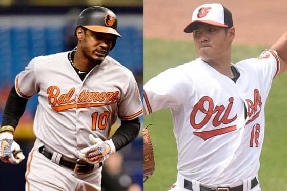 オリオールズ時代のアダム・ジョーンズとチェン・ウェイン(左から)【写真:Getty Images】