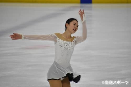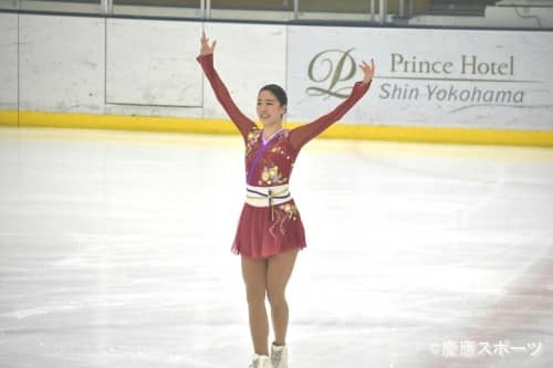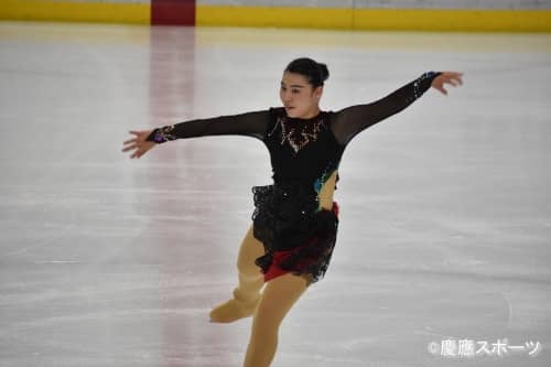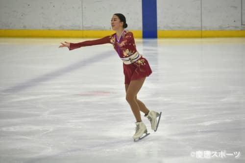 慶大勢3人目に登場したのは、小堀。冒頭のトリプルトーループ、ダブルトーループのコンビネーションジャンプを成功させる。そのまま流れに乗りたいところだったが、次のトリプルサルコウがダブルサルコウに。その後も、ダブルアクセルでの転倒や回転不足など、なかなかジャンプを決めきることができなかった。それでも、「レ・ミゼラブル」の壮大で力強い音楽に合わせて、伸びのあるスケートを披露した。前の大会の東インカレで今シーズンの目標であったインカレ出場を逃し、気持ちの面でスケートに向き合えていなかったという小堀。また、けがも完治していない状態だ。気持ちを取り戻した完全体の「小堀瑛美」に期待したい。