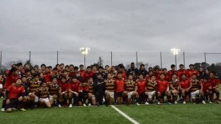 試合後には両チームまざって記念撮影を行なった4年生試合 vs帝京大慶大24−60帝京大12月22日(日) 13:00K.…