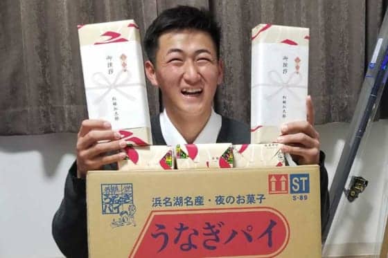地元静岡の名物・うなぎパイを40個持参し入寮したドラフト2位・紅林