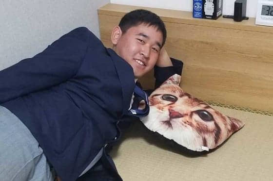 幼い頃から動物が好きで中学2年まではオス猫のブッチ君を飼っていたが「どっか行っちゃいました」と突然の別れに心を痛めた。だが、「顔と色が似てる」と昨年9月にブッチ君にそっくりな猫枕を見つけ一目ぼれし、そこから常に“猫枕”を愛用し入寮にも欠かさず持ってきたという。