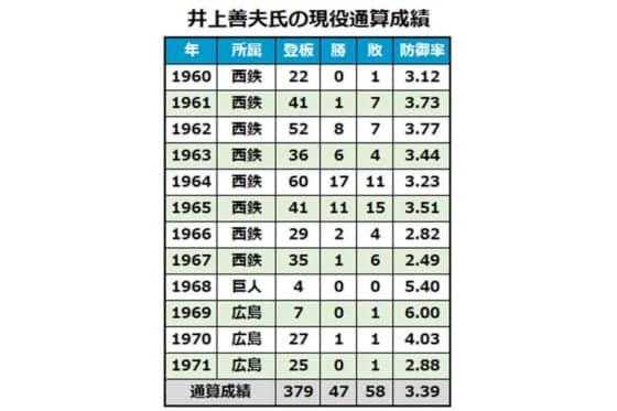 大エース稲尾が故障の影響で0勝に終わった1964年に17勝マーク 昨年12月31日に死去した井上善夫氏は、全盛期を過ぎた…