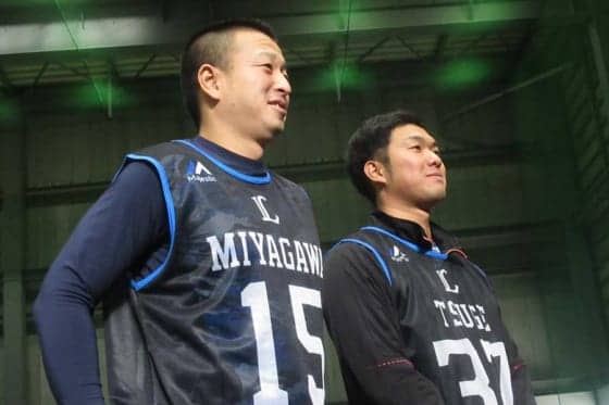 西武の新人合同自主トレに参加したドラ1・宮川哲とドラ5・柘植世那(左から)【写真:安藤かなみ】