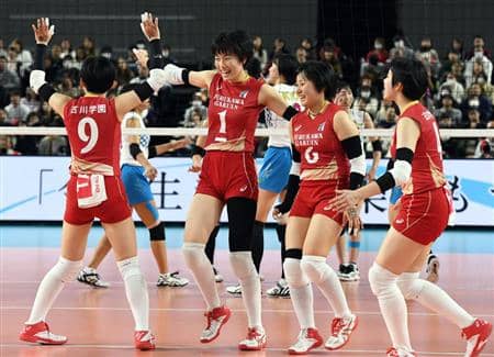 第4セットを奪われ、勝負は最終セットにもつれ込む。古川学園は、メリーサや杉木の攻撃で中盤に4点をリードし、相手の反撃を野呂がブロックで止める。メリーサのスパイクで勝利を手にすると、駆けつけた生徒や保護者ら約300人の応援団も喜びに沸いた。