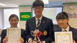 <写真・表彰式後、トロフィーと表彰状を掲げる編集部員> 1月11日、読売新聞大阪本社にて第13回ナジック杯大学スポー…