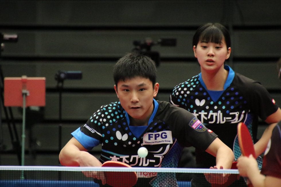 ○張本智和(木下グループ)/長﨑美柚(JOCエリートアカデミー/大原学園)3-1 松下大星(クローバー歯科カスピッズ)/梅村優香(中央大)