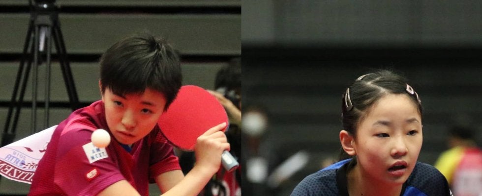 写真:小塩遥菜(写真左)と張本美和/撮影:ラリーズ編集部<天皇杯・皇后杯 2020年全日本卓球選手権大会(一般・ジュニア…