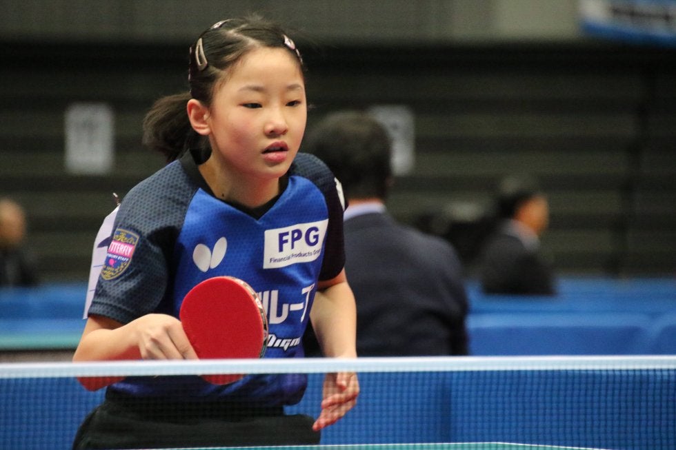 15日、全日本選手権(以下、全日本)女子ジュニアの部4回戦が行われ、張本美和(木下グループ)と小塩遥菜(JOCエリートアカデミー)が対戦。3-1で小塩が勝利した。