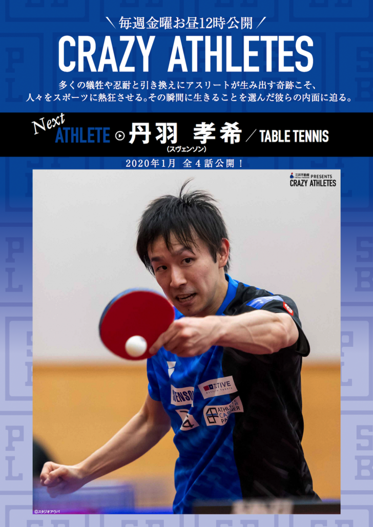 2020年1月、全4話に渡って公開される「三井不動産 Presents CRAZY ATHLETES 丹羽孝希」。今回インタビューの舞台となったのは、丹羽選手のホームでもある川崎市内の練習場でした。