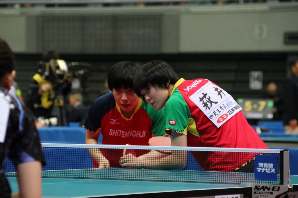 16日、全日本卓球選手権は大会4日目を迎えた。女子ダブルス4回戦で、大学女王ペアの熊中理子/三條裕紀(青山学院大)ペアが、ゲームカウント0-2から逆転勝利を収め、ベスト16入りを決めた。