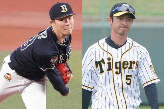 オリックス・山本由伸(左)と阪神・近本光司【写真:荒川祐史】