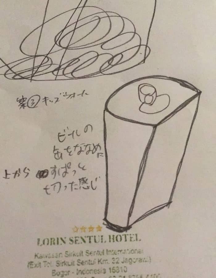そして「飲んでいたビールの缶を斜めに倒して、さらに斜めにスパッと切ったら面白い壁になりそう」と手書きで案を送ったところ、子供達が楽しそうに登る姿が想像できる魅力的なデザインが帰ってきたという。