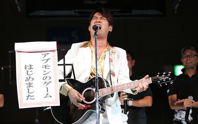 AMEMIYAさんは、バンダイナムコエンターテインメントの「デジモンユニバース アプリモンスターズ」(アプモン)記念ステージに登壇。同社CS事業部の新野範聰プロデューサー、バンダイ企画第三チームの齋藤洋太氏、東映アニメーションテレビ企画部の永富大地プロデューサー、集英社Vジャンプ編集部の内田太樹氏らと、得意の「はじめました」シリーズのギターとともに、アプモンの“痛い唄”を披露した。