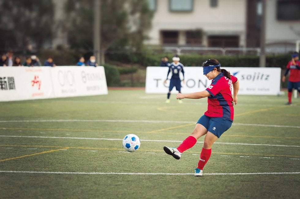 サッカーを始めたのは幼稚園の年中のとき。お父さんが地域の社会人リーグの選手だったので自然にやってみたいと思って始めたんです。小学校に入ると目が悪かったので、普通の小学校だけでなく盲学校にも週1回通うようになり、4年生のときにブラインドサッカーに出会いました。中学に入ったタイミングで、ブラインドサッカー1本に絞ったのですが、ちゃんとできるようになったと感じたのは中2のとき。チームのキャプテンがケガをしてしまい急遽、私が出場することになって。正直〝できるわけないじゃん〟って思いながらも〝やるしかない〟って思ったら怖さが吹っ切れてコート中を走りまわれるようになったんです。今の私の強みはドリブルなのですが、それもこの頃からできるようになりました。ブラインドサッカーだと両足ではさむようにドリブルする人が多いのですが、私は普通のサッカーと変わらないようなドリブルをするので、スピードを落とすことなく走れて、得点率が上がりました。2020年のパラリンピックでは男子のみが正式種目ですが、夢はパラリンピックに出ること! チャンスがあればぜひ目指したい場所です!!